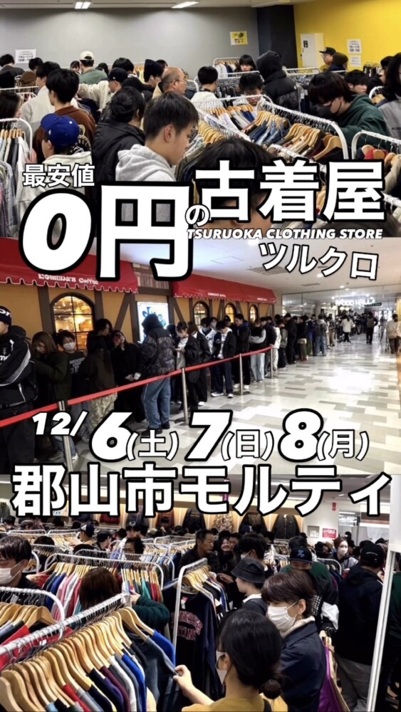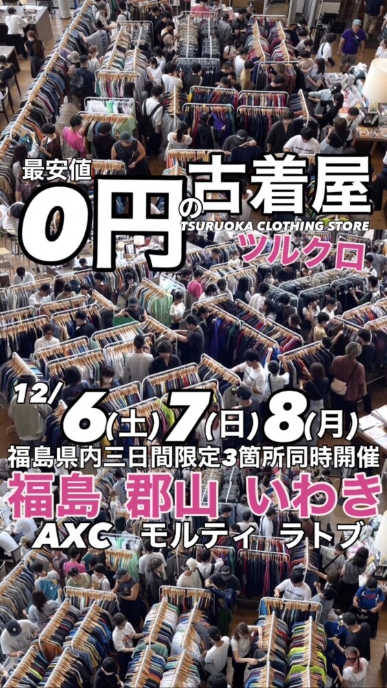 最安0円の古着屋「ツルクロ」12月6日~8日開催!