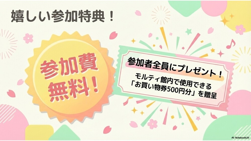 また参加者全員にモルティのお買物券500円分を差し上げます!