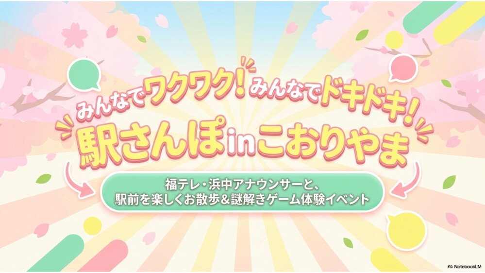 現在開催中の「郡山駅前謎ときゲーム」を一緒に解きながらスポットを巡ります。また浜中アナウンサーおすすめのお店への立ち寄りなど、郡山駅前を楽しく一緒に歩きましょう!