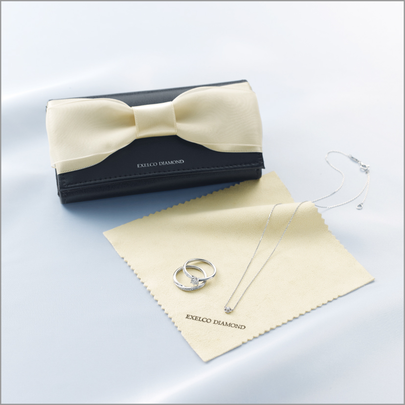 2)エンゲージリングご成約で…「ダイヤモンド専用クロス付きジュエリーポーチ」プレゼント