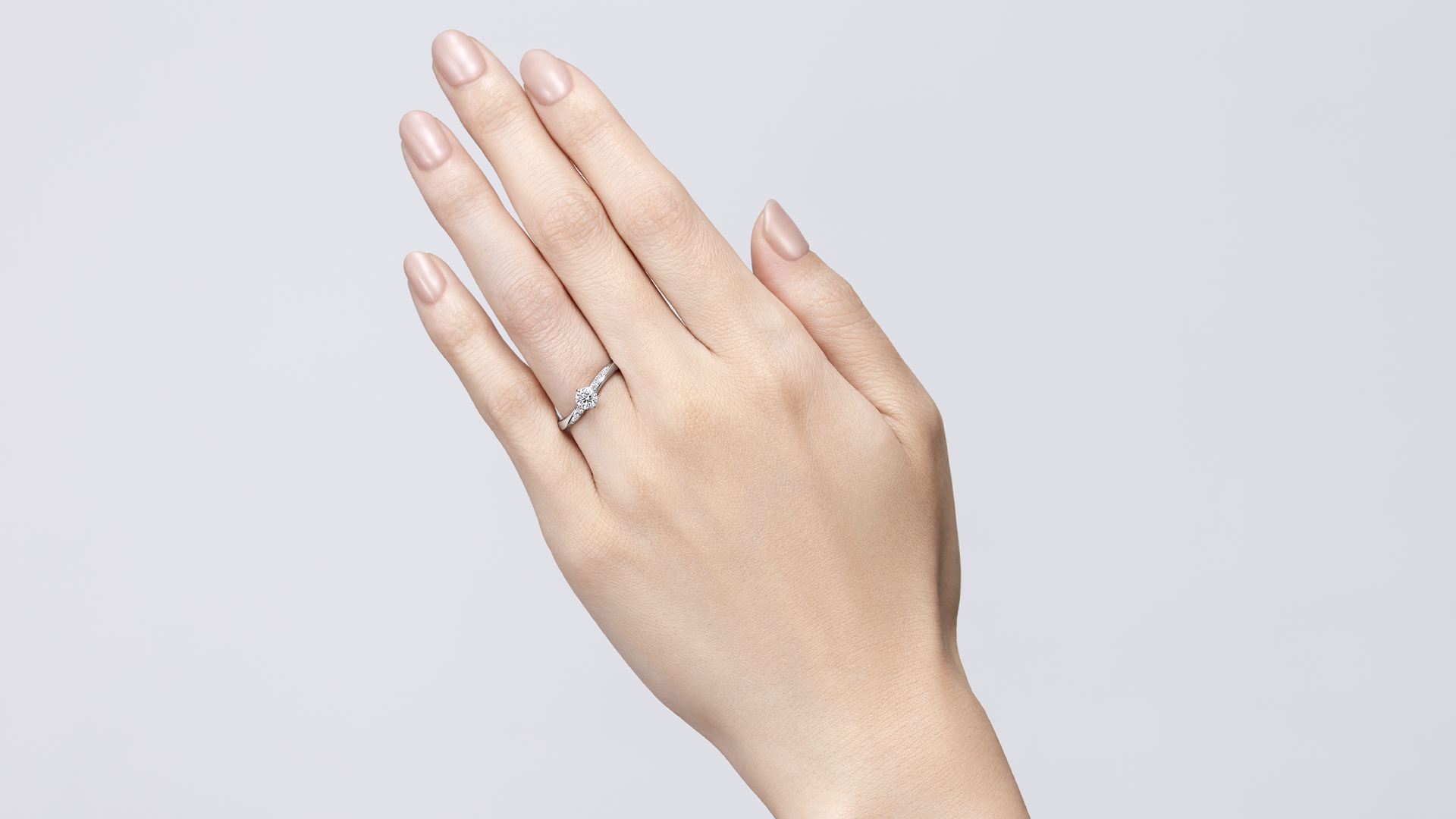 どんな時も向き合い、すべてを分かち合う夫婦愛を描いたオペラ戯曲から名前をもらったエンゲージリングは、同名のマリッジリングと重ねて着けた時にきれいに寄り添うウェーブラインが特長。華やかで一体感のあるコーディネートが楽しめます。