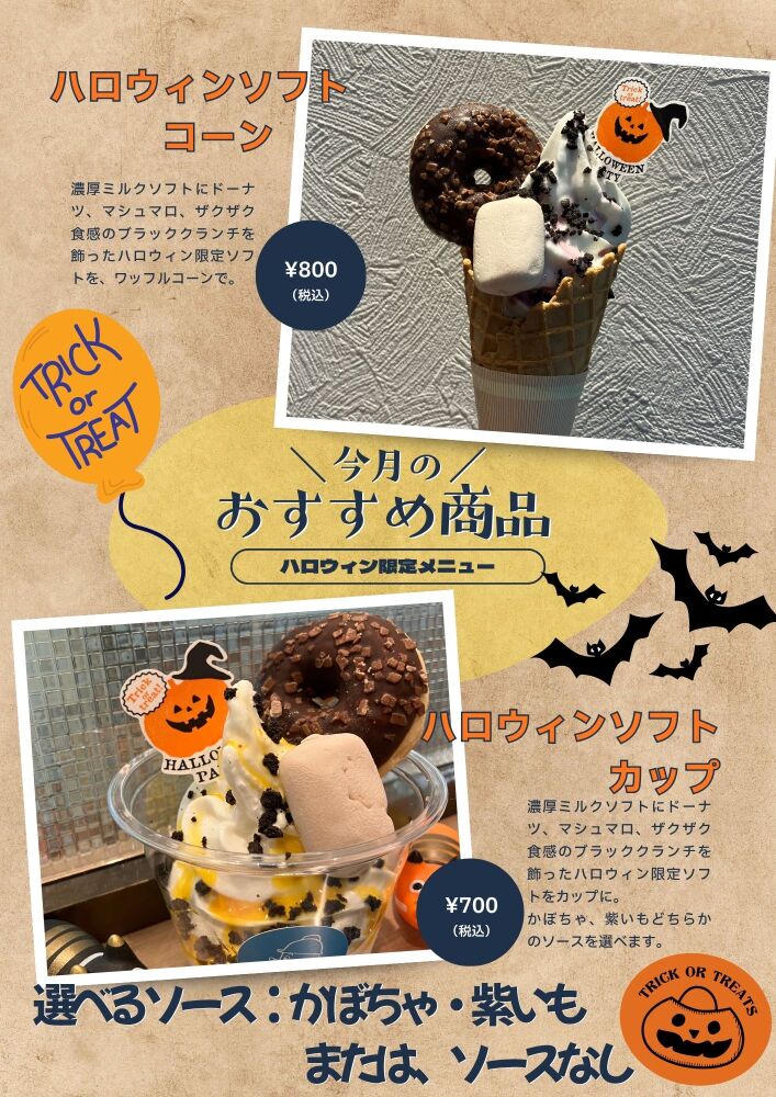カップ、コーン、ソースも選べるハロウィンソフト