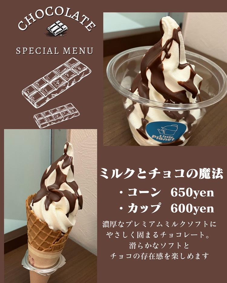 なめらかなミルクソフトとチョコの美味しさを一緒に味わえちゃう、ミルクにチョコで魔法をかけたようなプレミアムソフト🍦