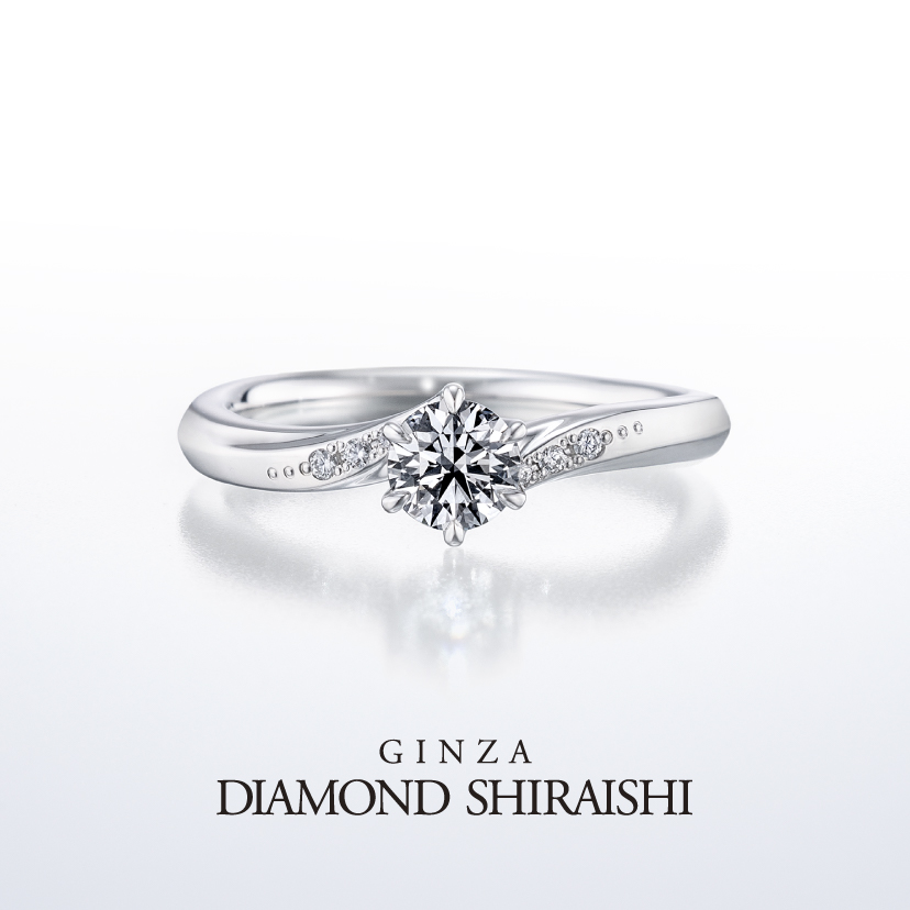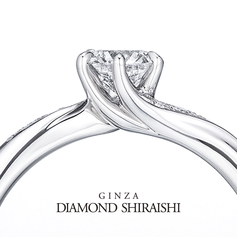 ふたりの想いが柔らかな愛に包み込まれるようにプラチナの曲線は優しくダイヤモンドへ向かいます。センターダイヤモンドに光が当たるセッティングで、ふたりが選ぶ純粋なダイヤモンドがより一層美しく輝きます。